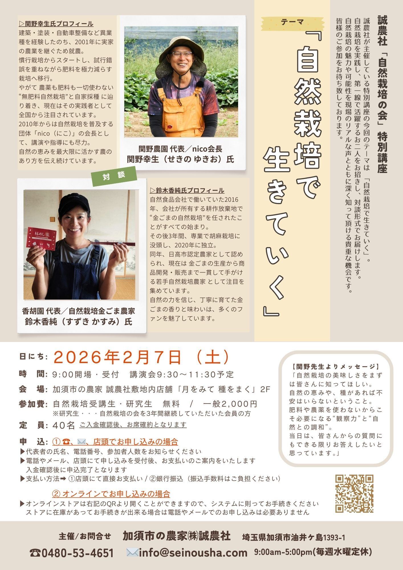 こちらは2/7開催、自然栽培の会特別講座の申込専用ページです。